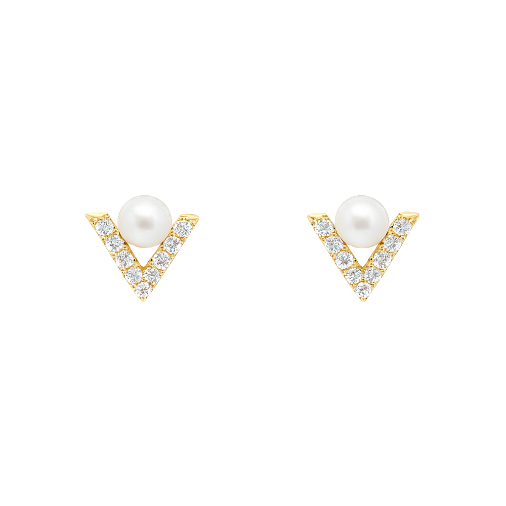 ต่างหูเงินชุบGงานมงคล ไข่มุก1CZ ตัวV เปอร์เซ็น: งานเงิน 92.5%