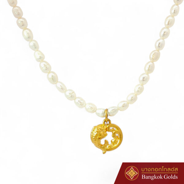 สร้อยคอไข่มุกปลาทอง ( อะไหล่เงินแท้ 925 ทอง 99.99% น้ำหนัก: 0.65 กรัม )