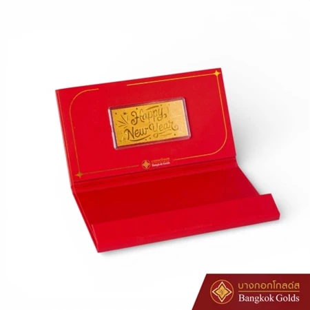 Bangkok Golds ทองแผ่น ทองคำแท้ 99.9% happy new year น้ำหนัก 0.6 กรัม มีใบรับประกัน พร้อมแพ็คเกจของขวัญ