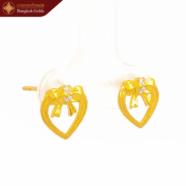 ต่างหูหัวใจโบว์ ครึ่งสลึง ทองคำแท้ 96.5%