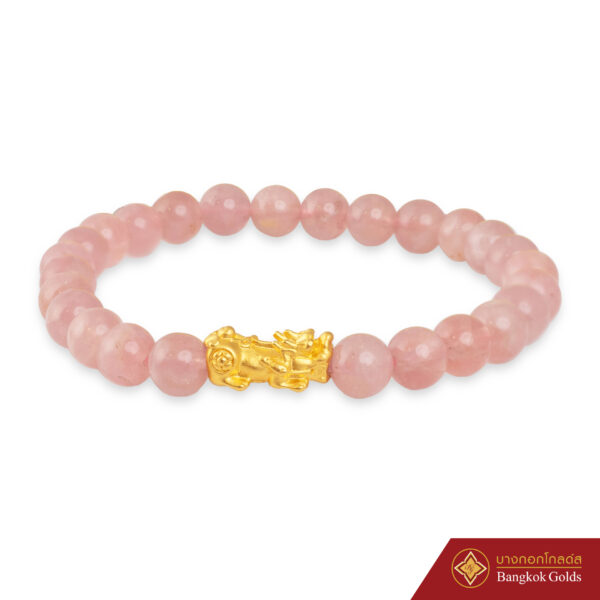 กำไรมือปี่เซียะ หินโรสควอทซ์ ทอง99.99 น้ำหนัก 0.2 กรัม * ของแท้ * ทองเยาวราช *สินค้ามีใบรับประกัน