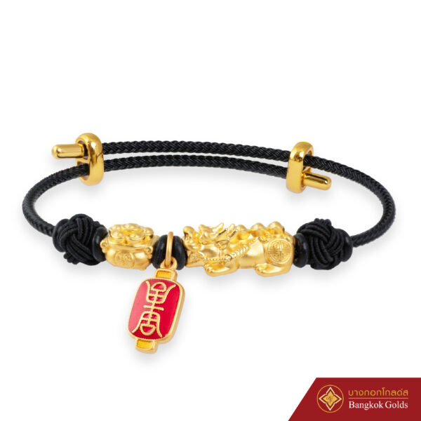 ปี่เซียะและถุงทองมงคล ทองแท้99.99% สายเชือกดำ (Pixiu YuanBao)