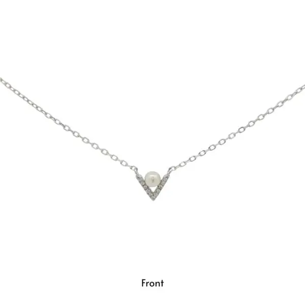 สร้อยคอเงินชุบโรเดียมงานมงคล ไข่มุก1CZ ตัวV เปอร์เซ็น: งานเงิน 92.5%