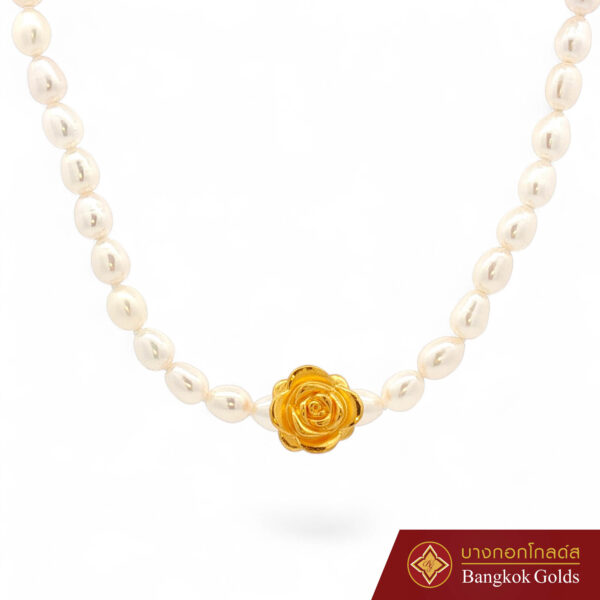 สร้อยคอไข่มุกดอกกุหลาบ ( อะไหล่เงินแท้ 925 ทอง 99.99% น้ำหนัก: 0.65 กรัม )
