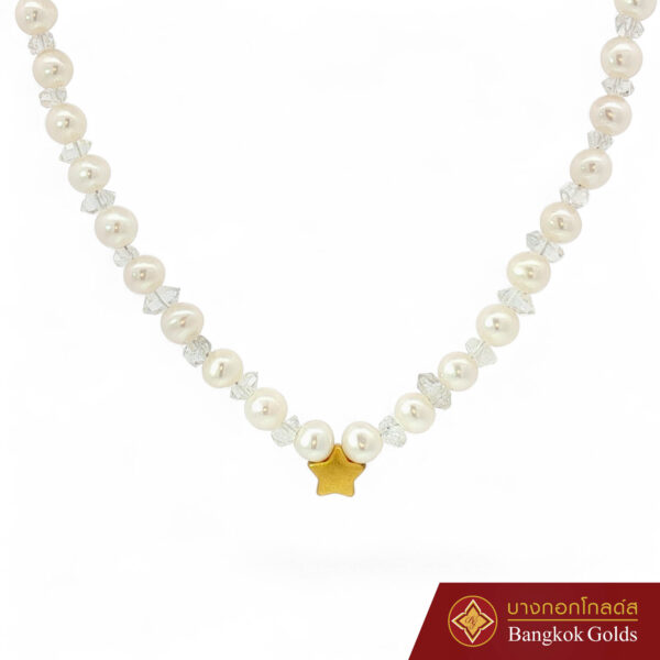 สร้อยคอไข่มุกดาว ( อะไหล่เงินแท้ 925 น้ำหนัก: 0.1 กรัม )