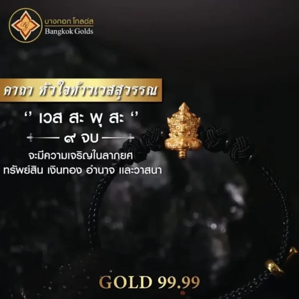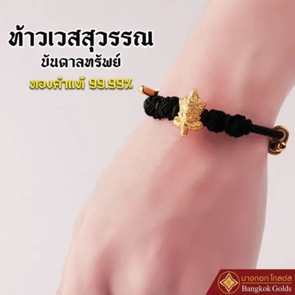 สร้อยข้อมือ ชาร์ม ท้าวเวสสุวรรณ ทองคำ 99.99% สายสีดำ